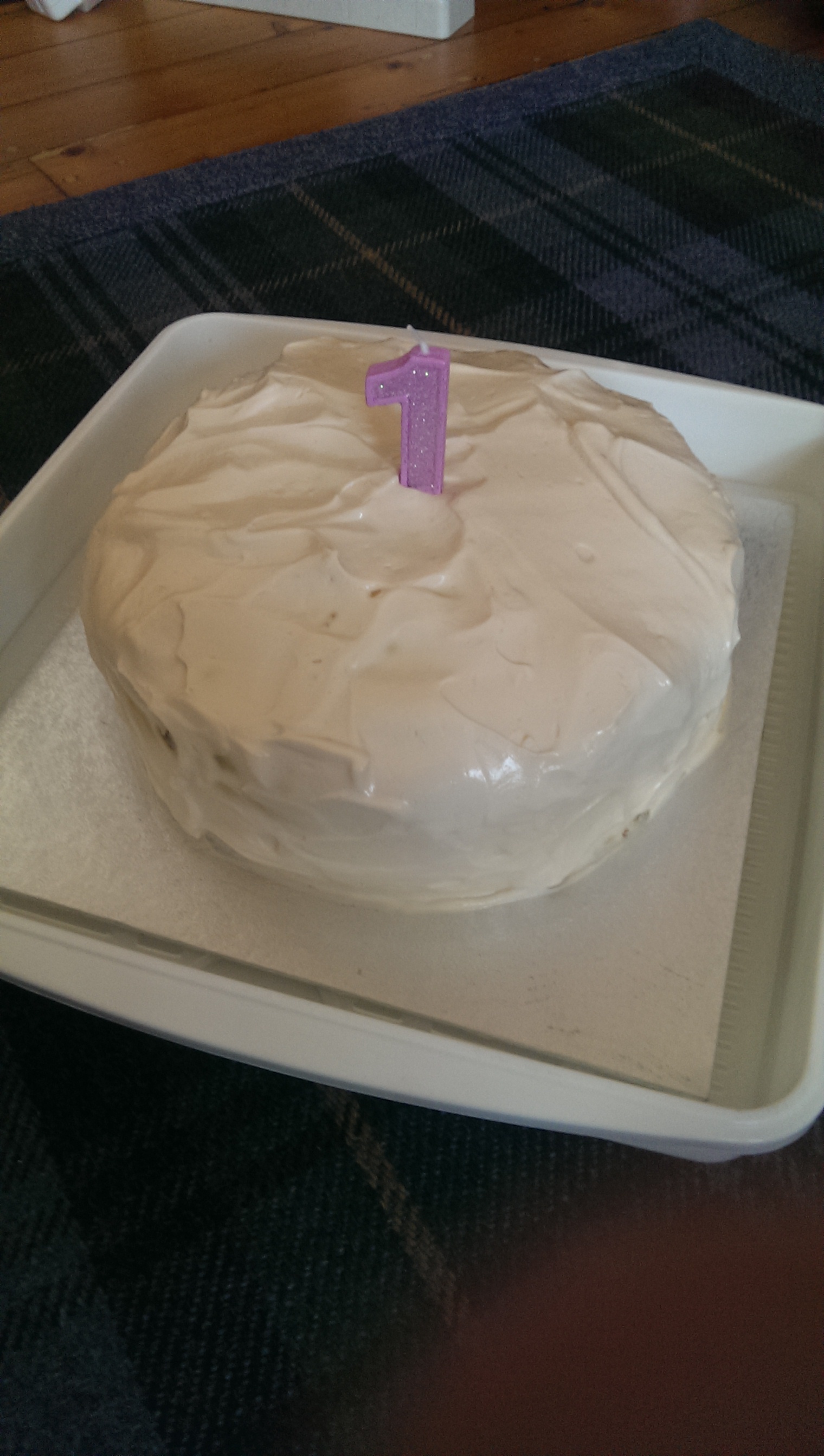 I was asked to bake a cake for my niece which she could eat on her first birthday! I had never heard of such a thing but took on the challenge and discovered that there are web pages dedicated to the topic! I opted for the Banana and Blueberry cake from www.homemade-baby-food-recipes.com with a cream cheese, apple and vanilla icing.